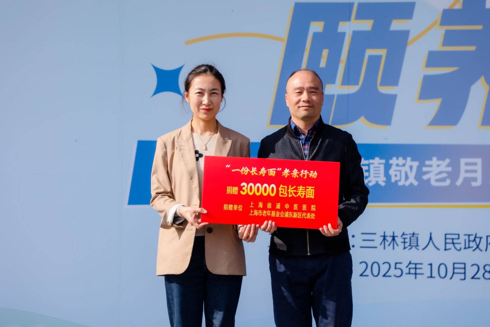 年年重阳,岁岁平安。值全国第十六个“重阳节”之时,为深入贯彻应对人口老龄化国家战略,积极构建老年友好型社会,营造孝亲敬老浓厚氛围,三林镇人民政府联合徐浦中医医院启动“乐享晚晴,颐养三林”2025年三林镇敬老月主题活动。作为“上海市老年友好型医院”徐浦中医医院向三林镇捐赠30000包长寿面,并提供中医适宜技术体验活动,用实际行动为银龄群体送上节日关怀。