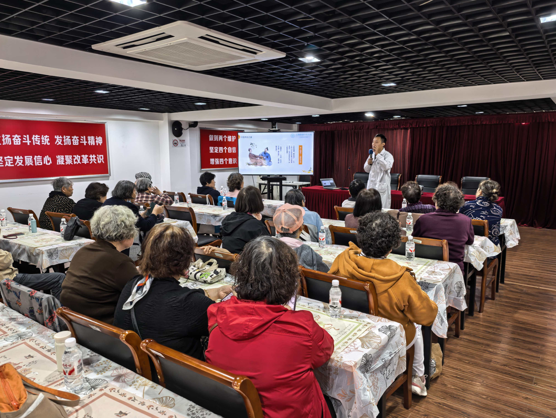 10月17日,活动来到三林镇综合为老服务中心。徐浦中医医院专家为老年居民带来秋冬养生科普讲座,结合中医理论,讲解季节性疾病预防、饮食调养等实用知识,并现场演示八段锦养生功法,引导居民科学养生。讲座结束后,专家团队继续为居民提供把脉问诊服务,针对高血压、糖尿病等慢性病,给出用药指导和生活建议。一位参与讲座的阿姨说:“医生讲得很清楚,我学到了很多秋冬养生的方法,希望以后能多举办这样的活动。”