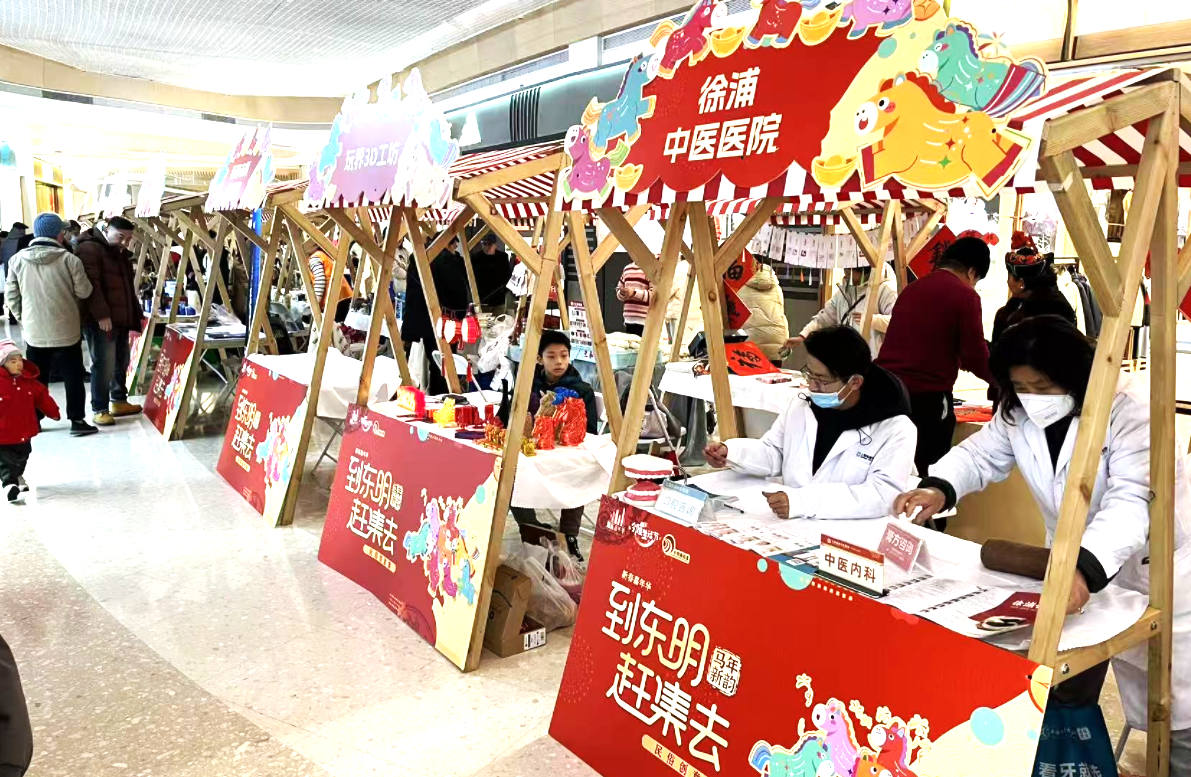 “人间烟火气,最在市集中。不如一起到东明赶集,穿越回充满年味的大集现场,摇响许愿铃,套住新春礼,看龙马精神,见邻里温情。这个春节,让仪式感‘马’上有!”活动时间2月7日 - 2月8日(周六、周日),新达汇主会场现场分为民俗创意市集、怀旧游园会两大板块,涵盖年货好物、非遗体验、智能家电、养生服务等超全品类。徐浦中医院的健康服务专区成为活动现场的一大亮点,为市民的健康保驾护航,让市民在感受年味的同时,也能关注自身健康。