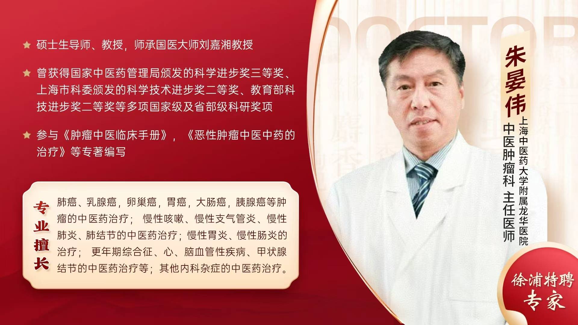 作为上海徐浦医院特聘肿瘤专家,朱晏伟主任师承国医大师刘嘉湘教授,擅长各类肿瘤的预防与中医调理,尤其在高危人群防癌干预方面有着深厚的临床积淀。他强调,高危人群防癌,第一点就是精准筛查,早发现早干预,这是防癌的第一道防线。